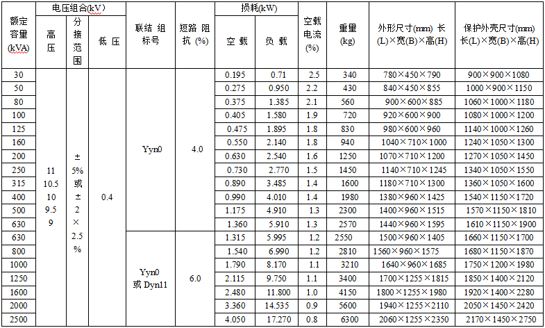 10kV級干式變壓器SCB10系列技術(shù)參數(shù)